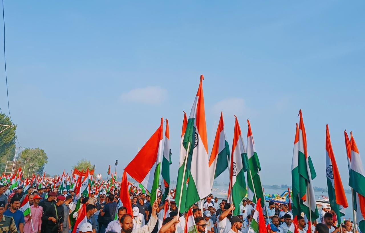In a powerful display of national pride, residents of Kashmir Valley took part in ‘Tiranga Rallies’ across multiple districts, proudly displaying the Indian flag in their homes and communities as part of the ‘Har Ghar Tiranga’ campaign ahead of Independence Day.