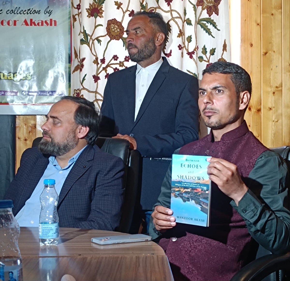 Srinagar, April 08: It takes sweat, determination, and hard work to convert a dream into a reality. This is what a young teacher Manzoor Akash from Rafiabad, Baramulla district, does. Having published his 5th book, “Between Echoes and Shadows” recently, the JKAACL (Jammu and Kashmir Academy of Art, Culture & Languages) on Saturday organised a book launch program at Tagore Hall, Srinagar where Rafiabad teacher Manzoor Akash’s poetic collection was released which was warmly received in the literary circles. The book, ” Between Echoes and Shadows” is a collection of poems on whispers of the past and cries of the present, offering a profound exploration of finding a tranquil escape from the bustling world and continuous screen staring where feelings are weaved into words.